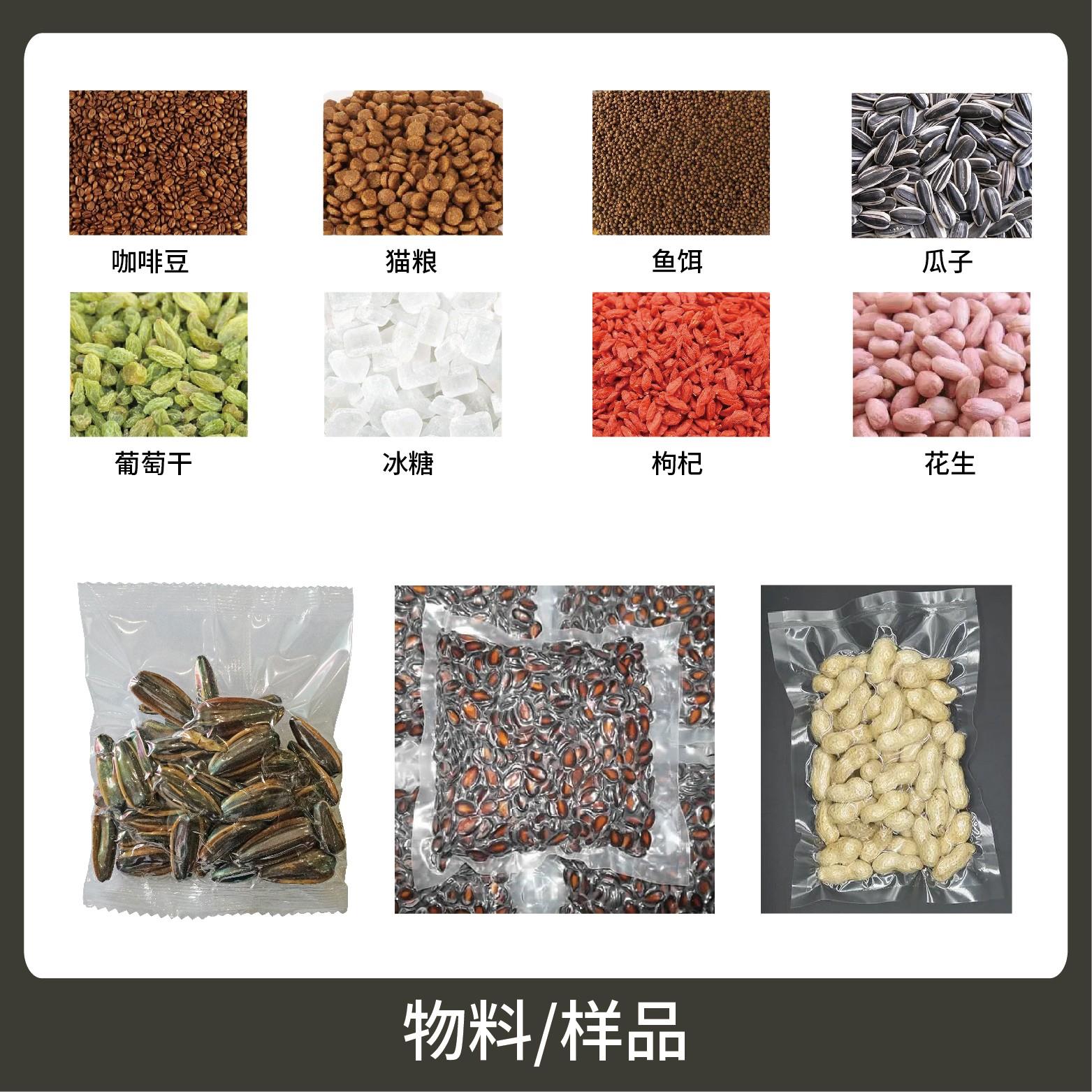 1、適用于食品行業(yè)中干果、炒貨、干菜等顆粒物品的真空計(jì)量包裝,防止食品的霉腐變質(zhì),保持食品的色香味,延長保質(zhì)期。