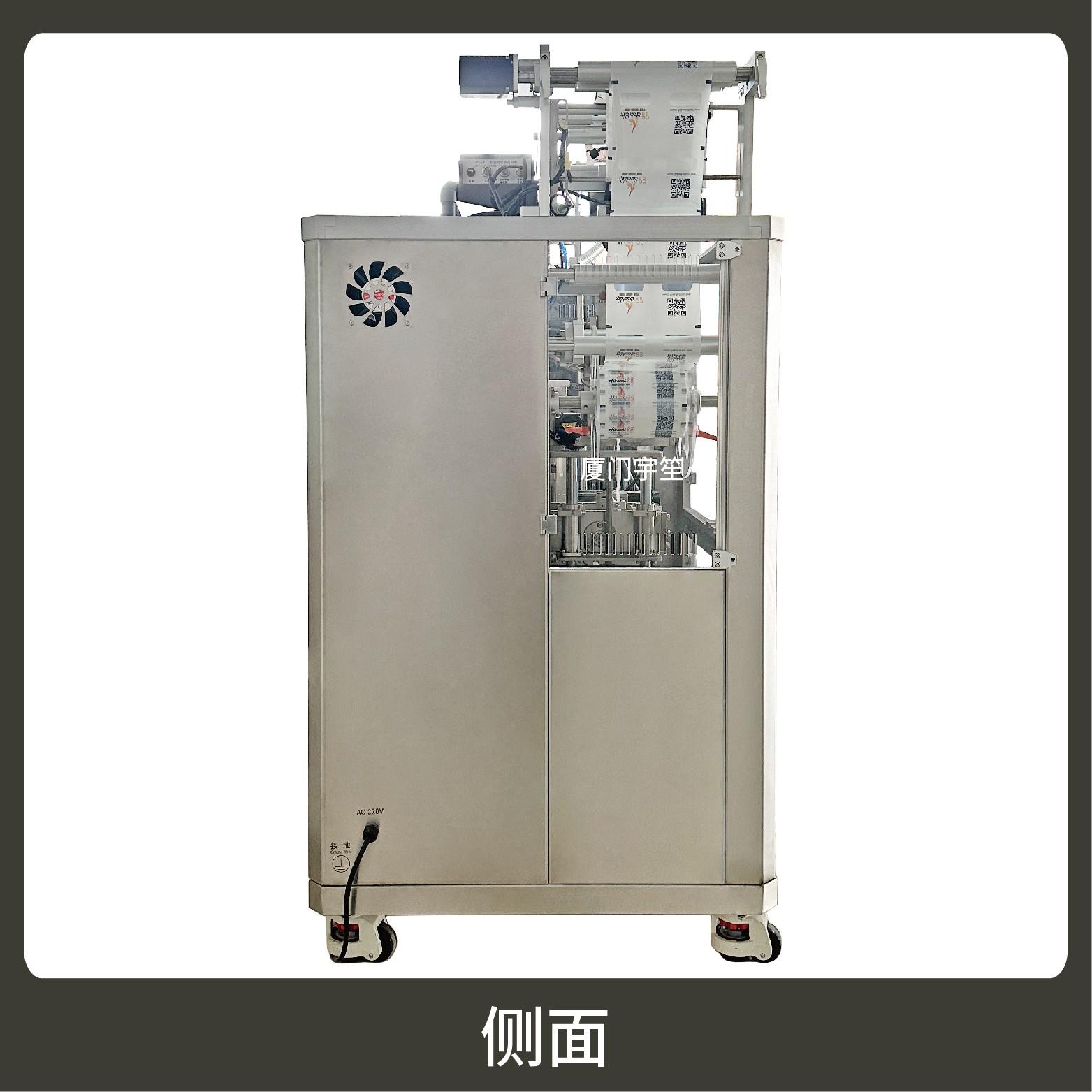 2、可自動(dòng)完成制袋、計(jì)量、下料、封合、分切、計(jì)數(shù)、且可根據(jù)客戶要求配置打印批號(hào)等功能。