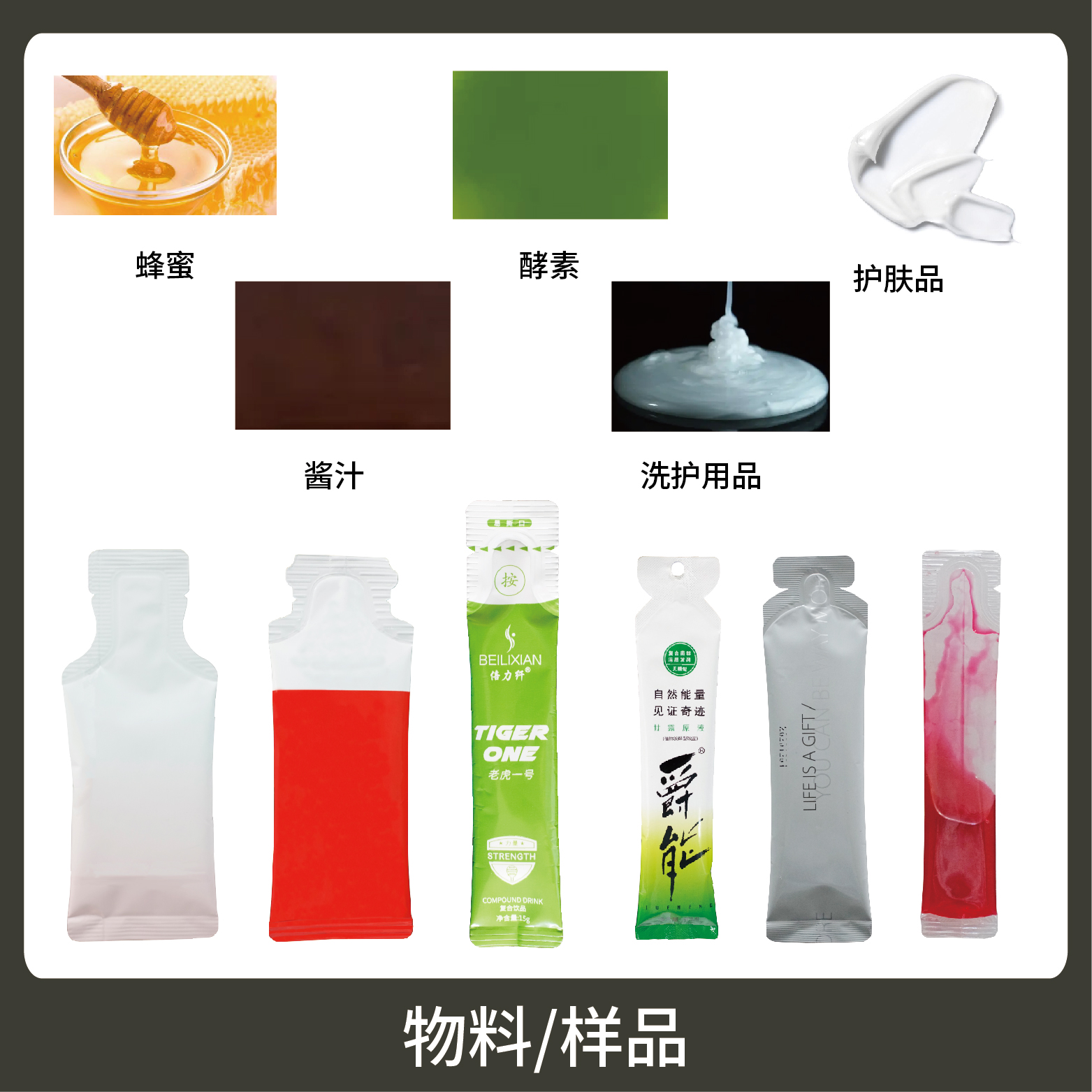 特 點(diǎn)1、適用于各行業(yè)中酵素、果汁、漱口水、洗護(hù)用品、染發(fā)劑、化妝品小樣等醬料、液體物品的異形袋計(jì)量包裝。